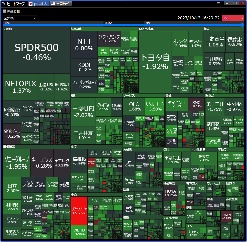 前日(10/12)のCPI(予想:3.6%、結果:3.7%)を受けて、日本株、全面安。。。