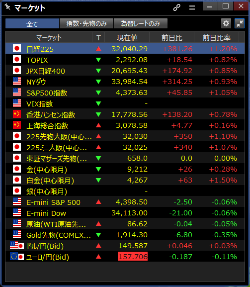 日経 +381.26 、昨日(10/16)の下げからの反発で半値戻し。
